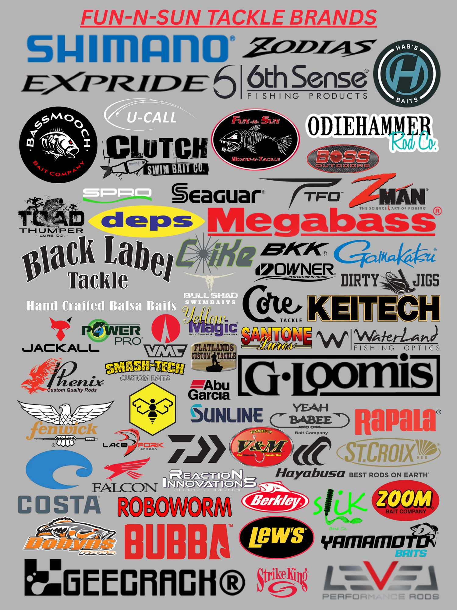 Here at Fun-N-Sun Boats and Tackle, we carry a wide wariety of awesome and well built rod and reels. Industry leading and quality brands keeps our customers coming back and contine getting the best of the best. We use our products on the water as well, and that is what makes it so easy for us to sell and offer it the people that walk through our doors each and every day. That is what seperates us from the competition, from the Fun-N-Sun staff to our customers we are all family.